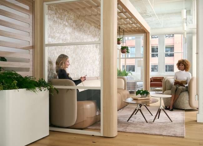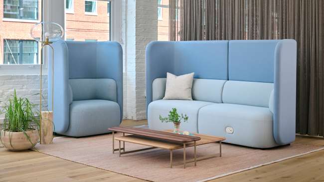 Available as lounge chairs, sofas, and modular units with or without privacy panels. Upholstery options include Kvadrat, Maharam, and Designtex textiles; base finishes offered in wood or metal to complement any interior aesthetic.