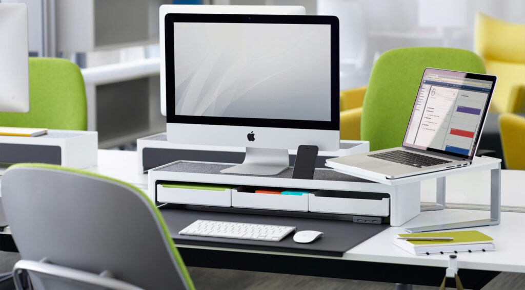 - Monitor Stands: Raise monitors to eye level while providing space underneath for storing keyboards or papers, keeping the desk surface clear.