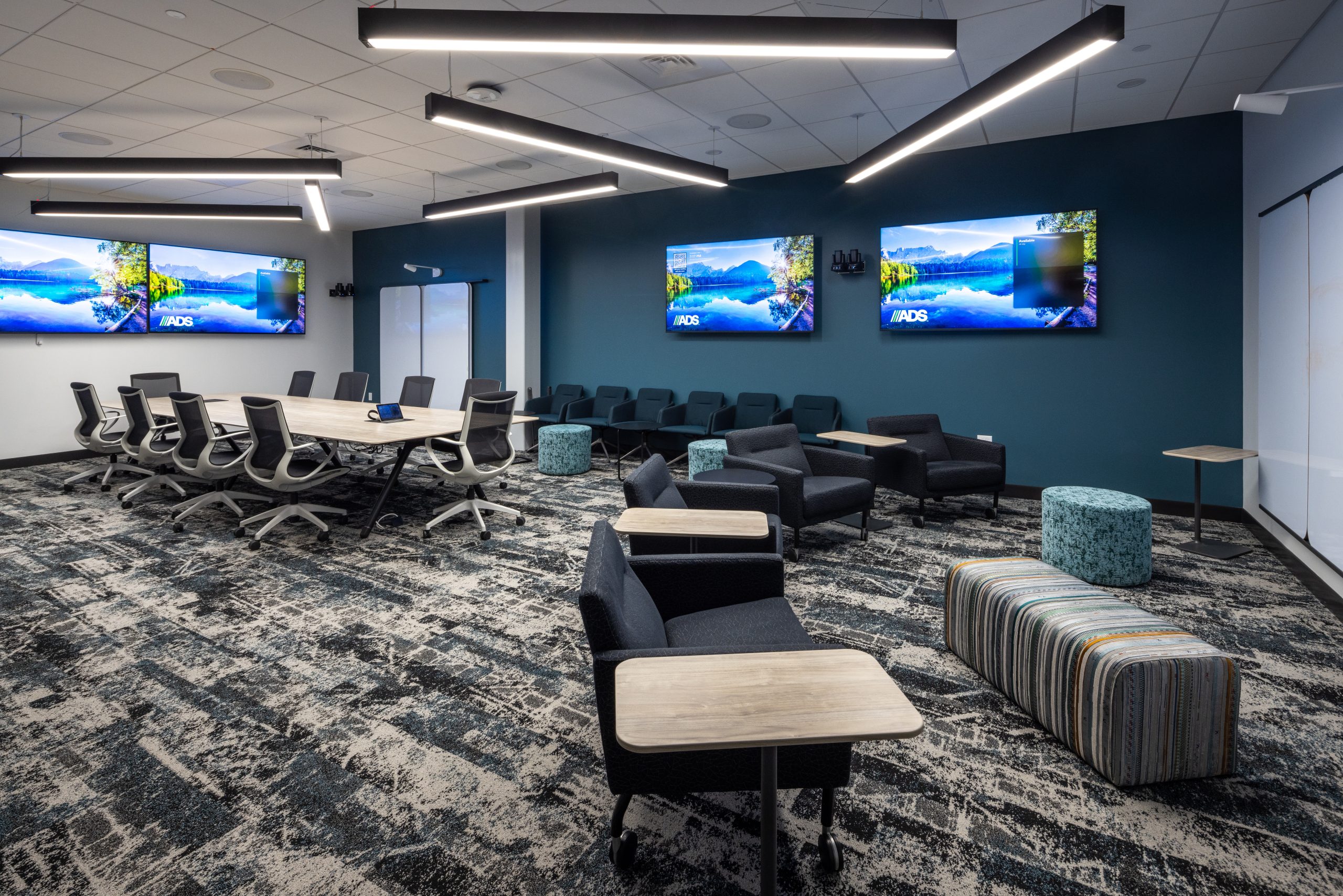 The completed headquarters in Hilliard, Ohio, delivers a dynamic, people-centered workplace that is more than just a building—it’s a catalyst for what’s next at ADS. Thoughtful design, collaborative spaces, and future-ready solutions now support innovation, productivity, and employee engagement at every level.