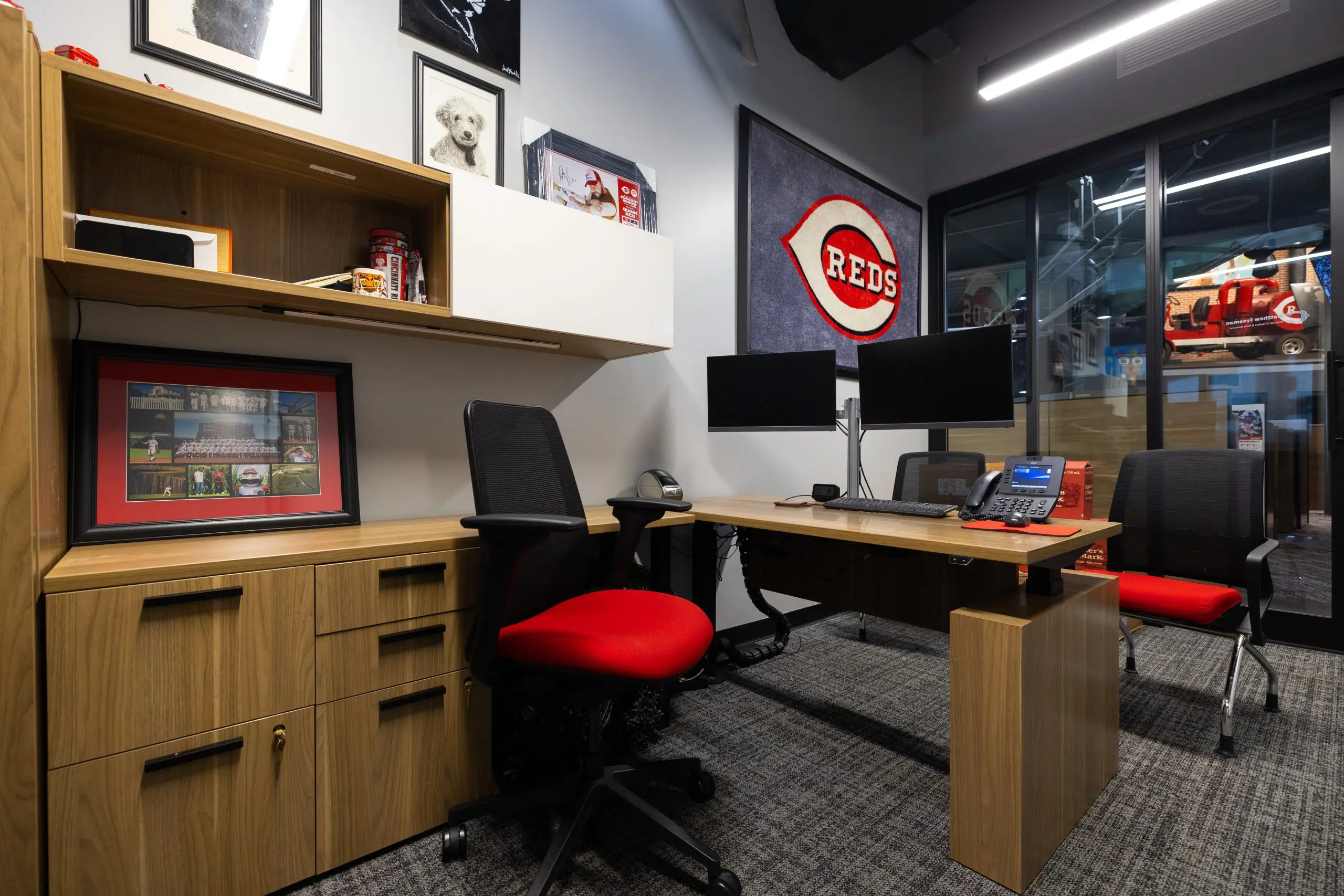 Driven by Phil Castellini’s vision, the Reds wanted to move away from their standard office design toward a more inviting and branded atmosphere. The goal was to create a workspace that felt distinctly “Reds”, which is authentic, warm, and dynamic. while also serving as a draw for both employee engagement and recruitment.