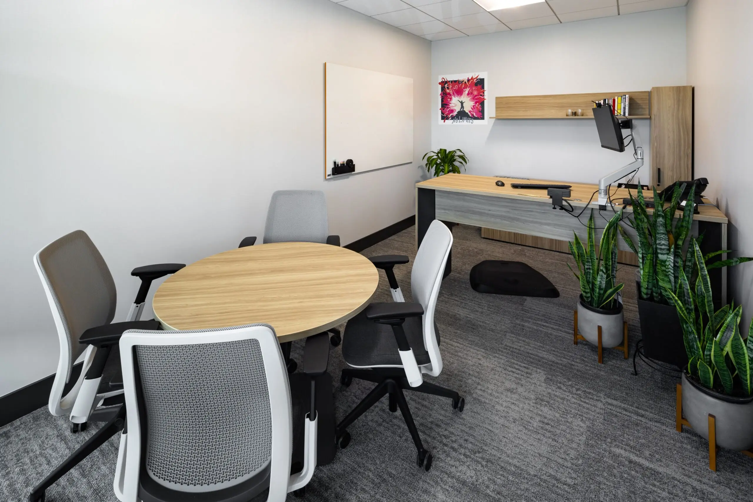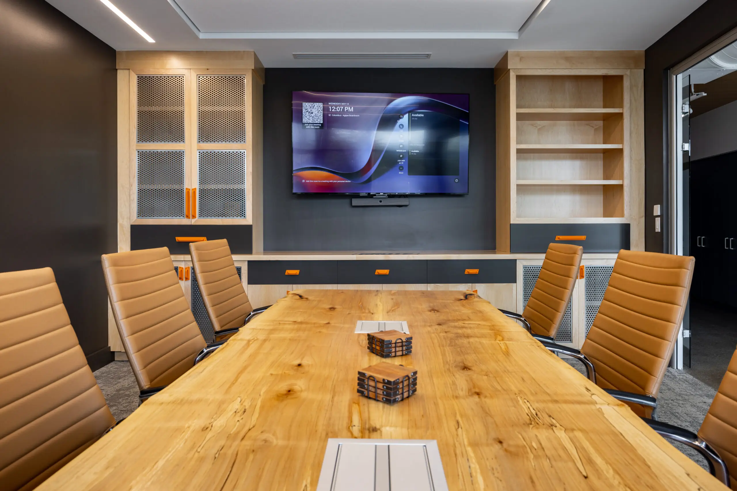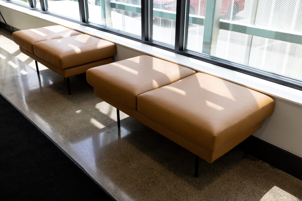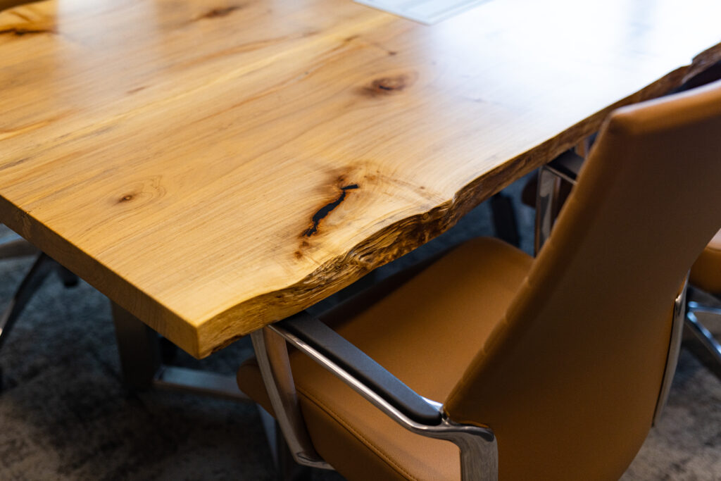 LOTH partnered with MA Design and MAC Construction to bring the project to life, curating furniture and solutions that elevated both form and function. Every employee was given a curated menu of furniture options to customize their office — ensuring flexibility while maintaining design cohesion. A standout collaboration came through A Carpenter’s Son and Grote’s own manufacturing team. Together, they designed a custom boardroom table and storage wall featuring Grote-fabricated metalwork, branded accents, and a stamped company logo — an heirloom piece that reflects craftsmanship and pride in their work.