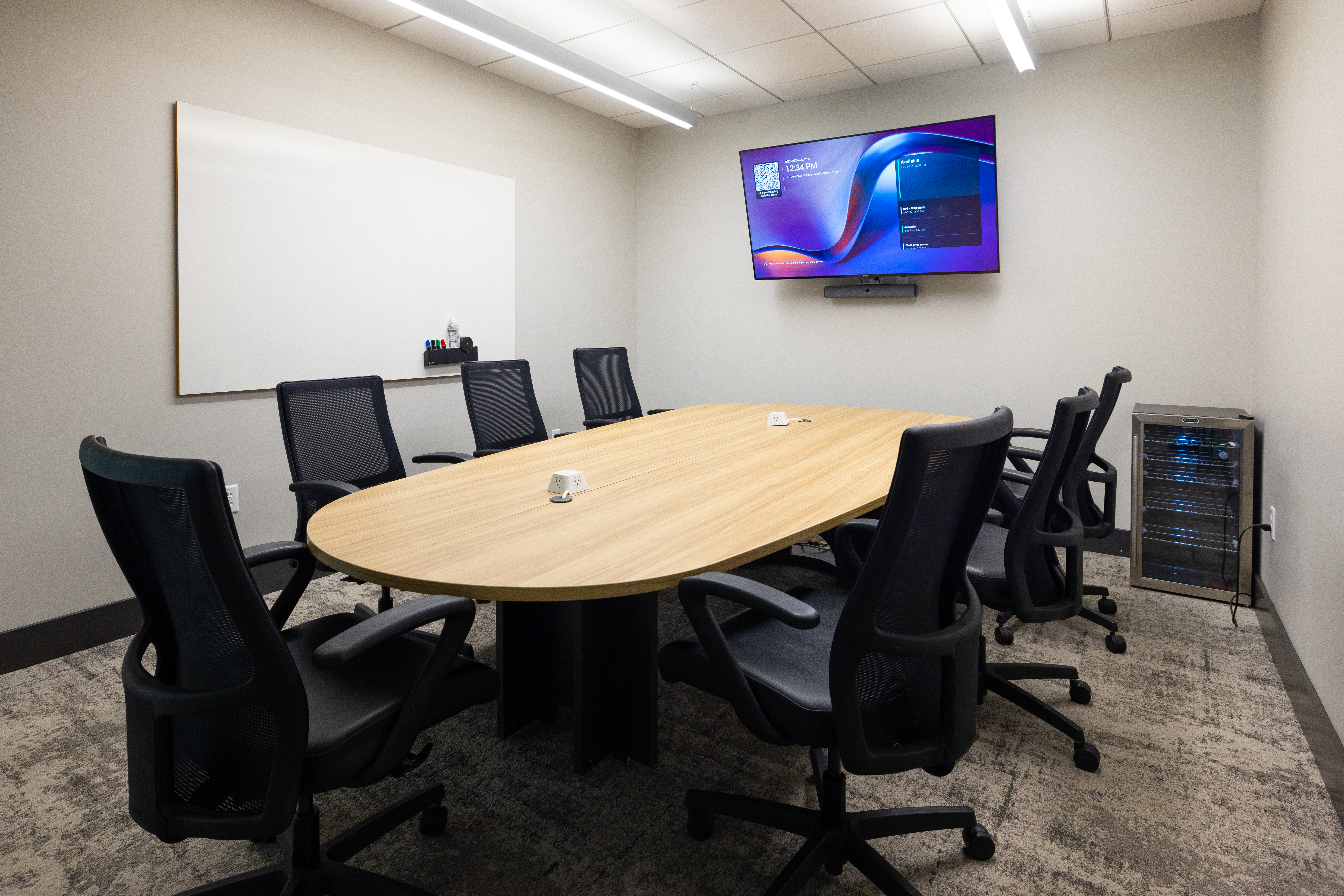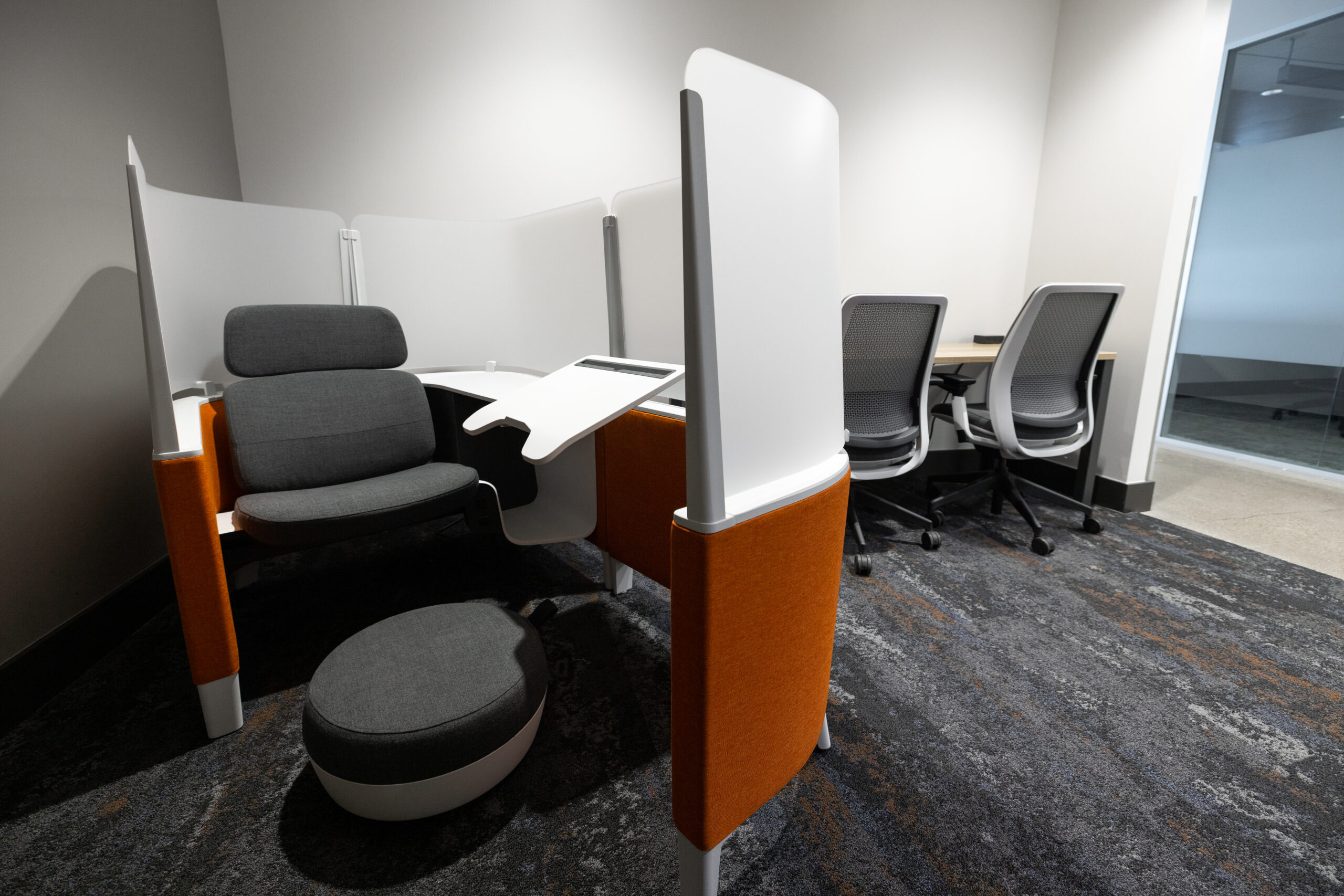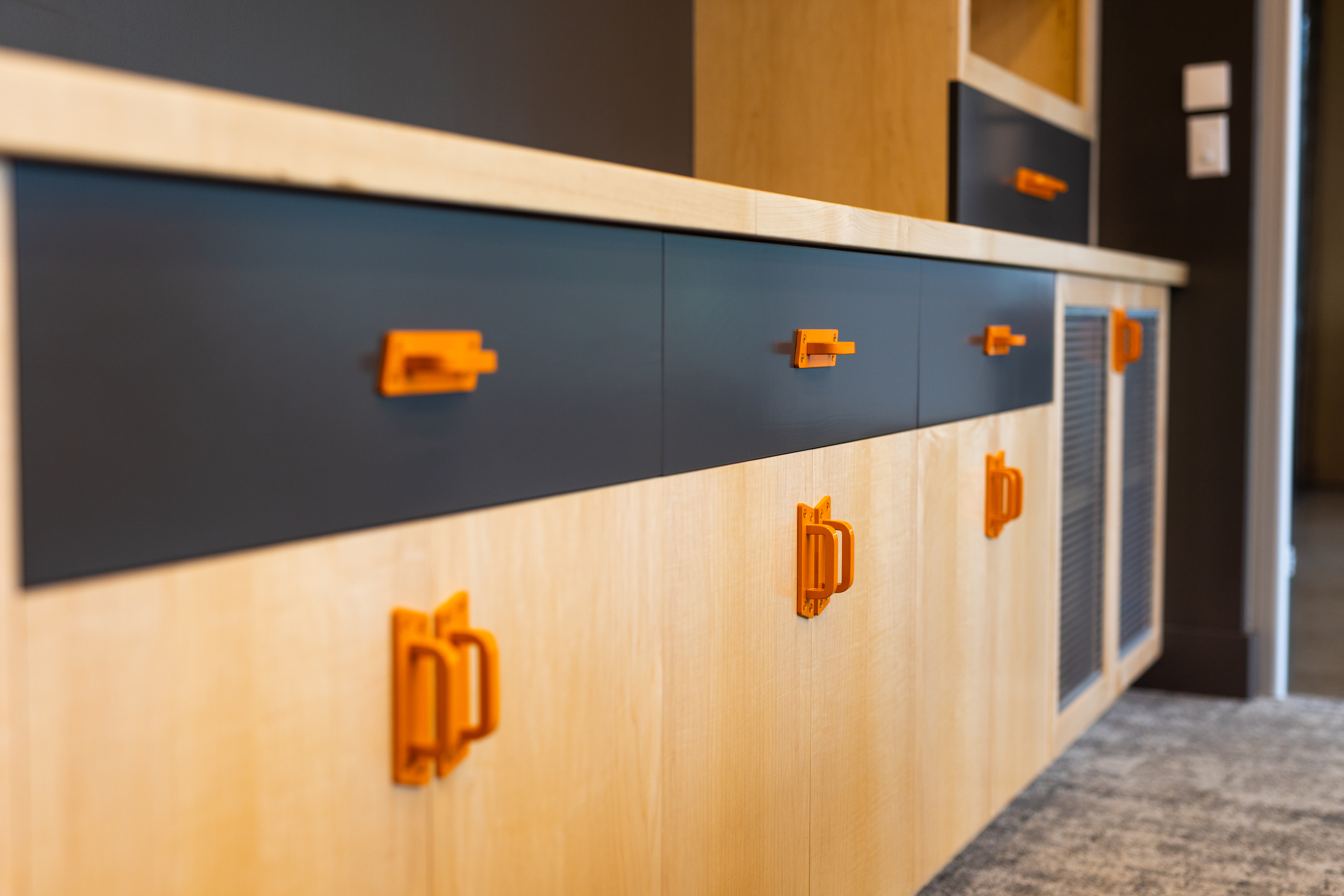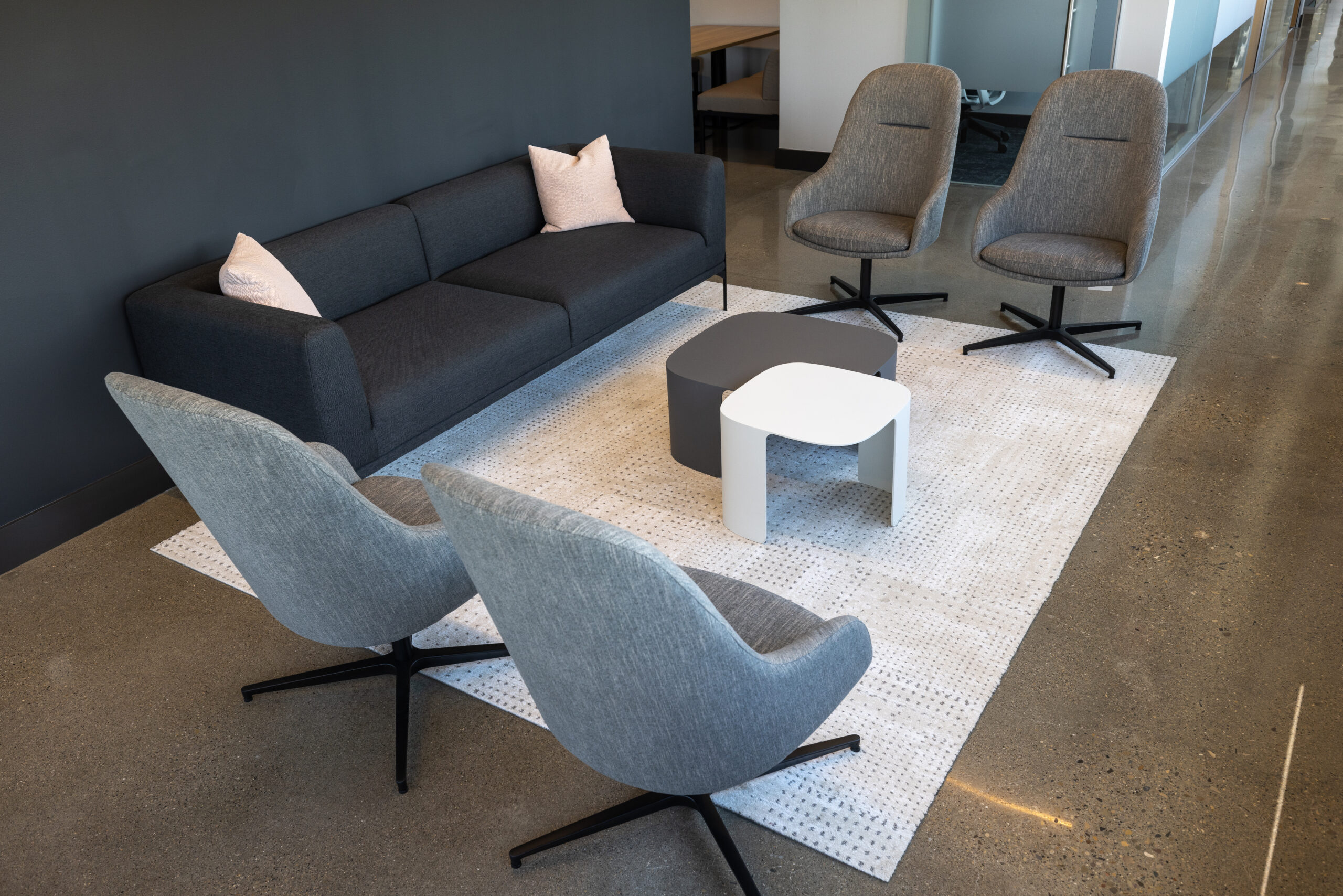 LOTH partnered with MA Design and MAC Construction to bring the project to life, curating furniture and solutions that elevated both form and function. Every employee was given a curated menu of furniture options to customize their office — ensuring flexibility while maintaining design cohesion. A standout collaboration came through A Carpenter’s Son and Grote’s own manufacturing team. Together, they designed a custom boardroom table and storage wall featuring Grote-fabricated metalwork, branded accents, and a stamped company logo — an heirloom piece that reflects craftsmanship and pride in their work.
