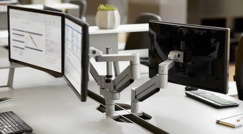 • Collaboration and Sharing: In collaborative work environments, monitor arms allow for easy screen sharing and collaboration by enabling monitors to be moved and adjusted for optimal viewing by multiple users.