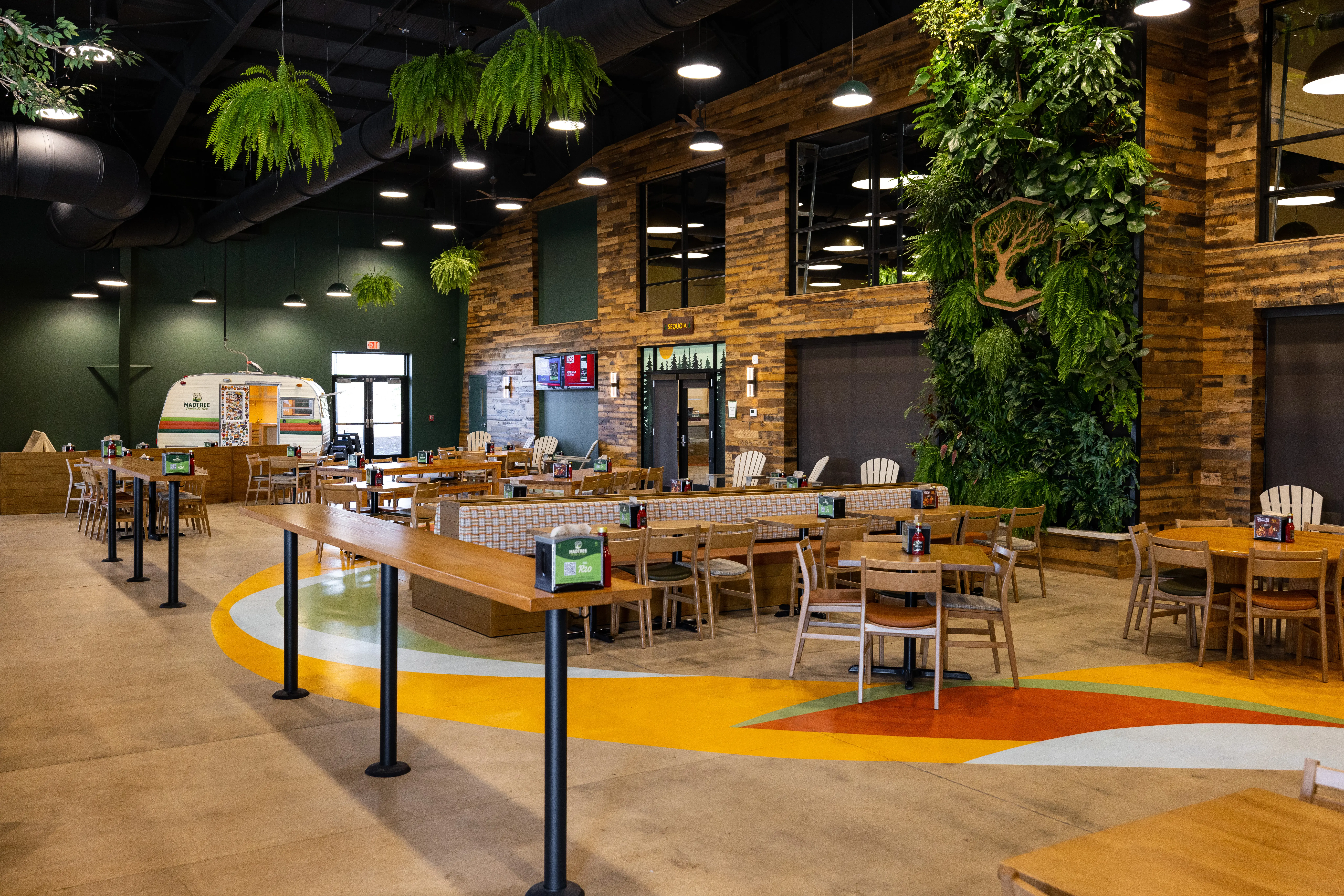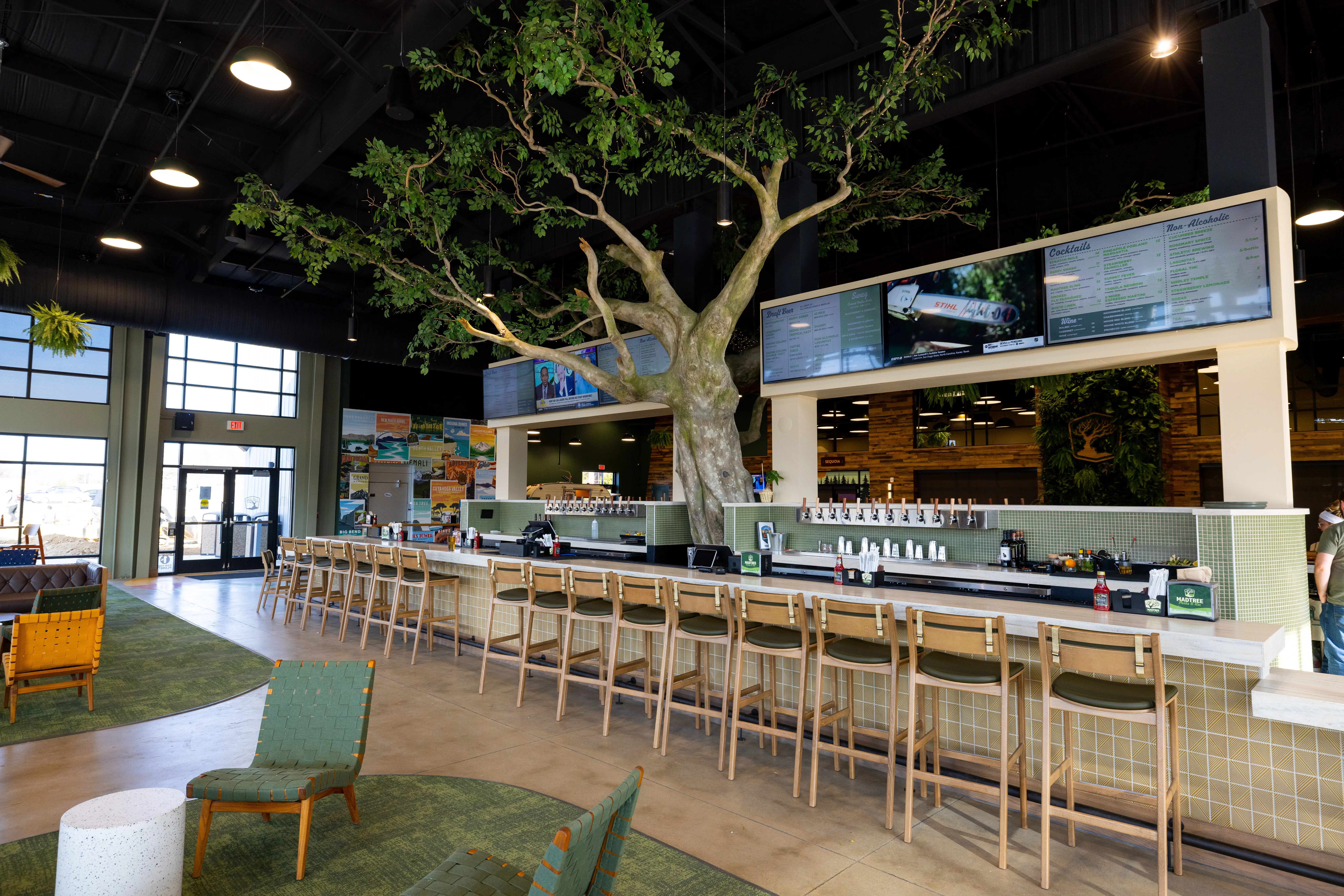 The goal was to design a space that connected people through nature, community, and craft beer. Features like a life-size indoor tree, living wall, camper, and kids’ zone added warmth and creativity while enhancing the park’s natural charm.