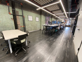 MKC Architects was seeking a solution for open, collaborative work in a benching setting along with smaller break out spaces for meetings and conversation. Their vision was a modern aesthetic integrated into a renovated, historic building.