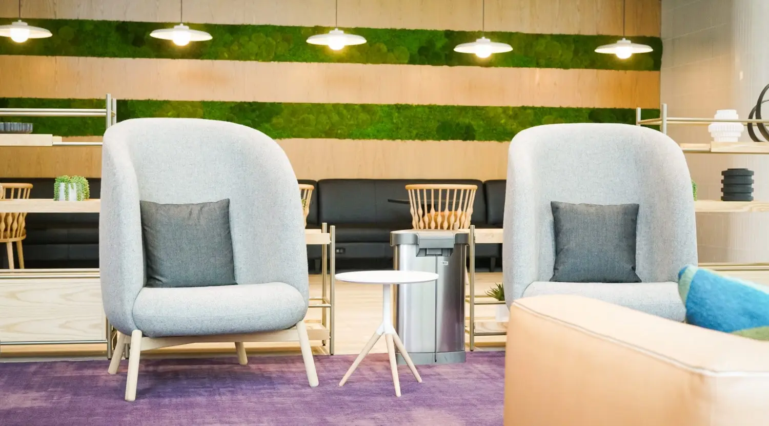 The renovated common areas now include a café, gaming area, informal meeting spots, and a 60+ person conference room. LOTH delivered a blended solution using manufacturers like Coalesse, Blu Dot, OFS, and JSI to meet both performance and aesthetic goals.