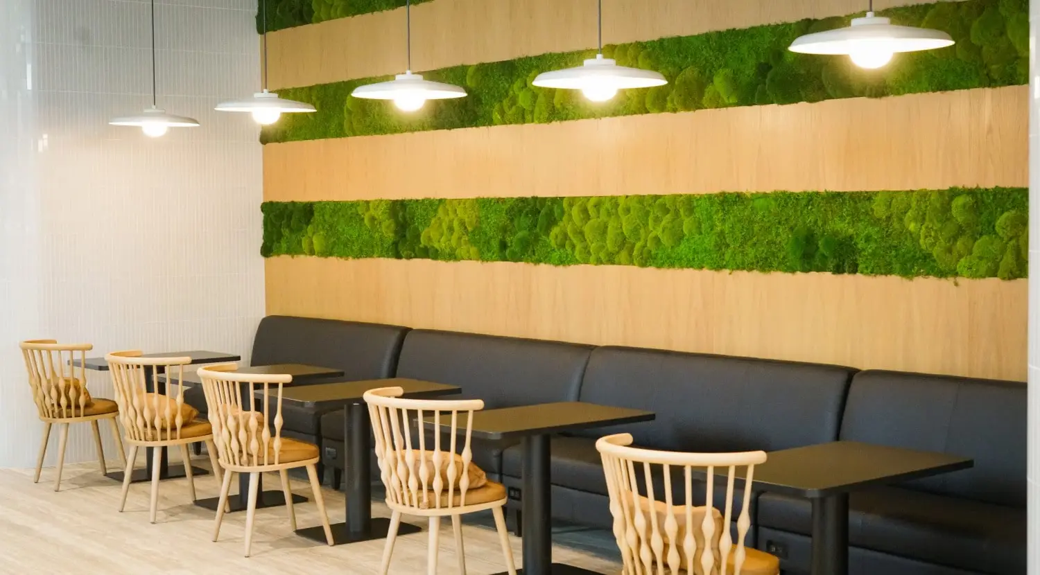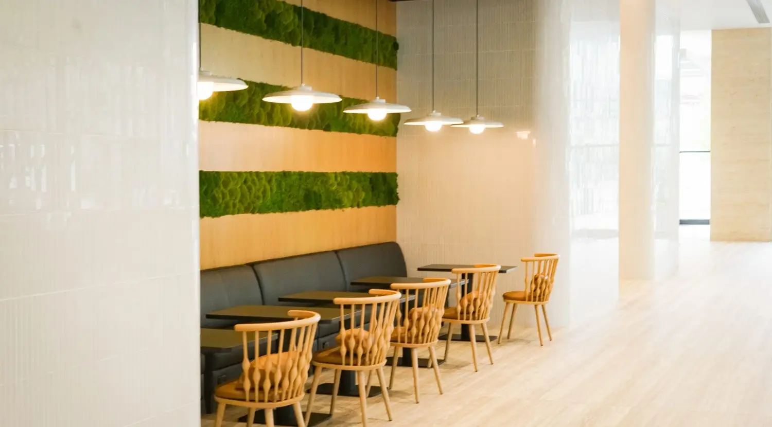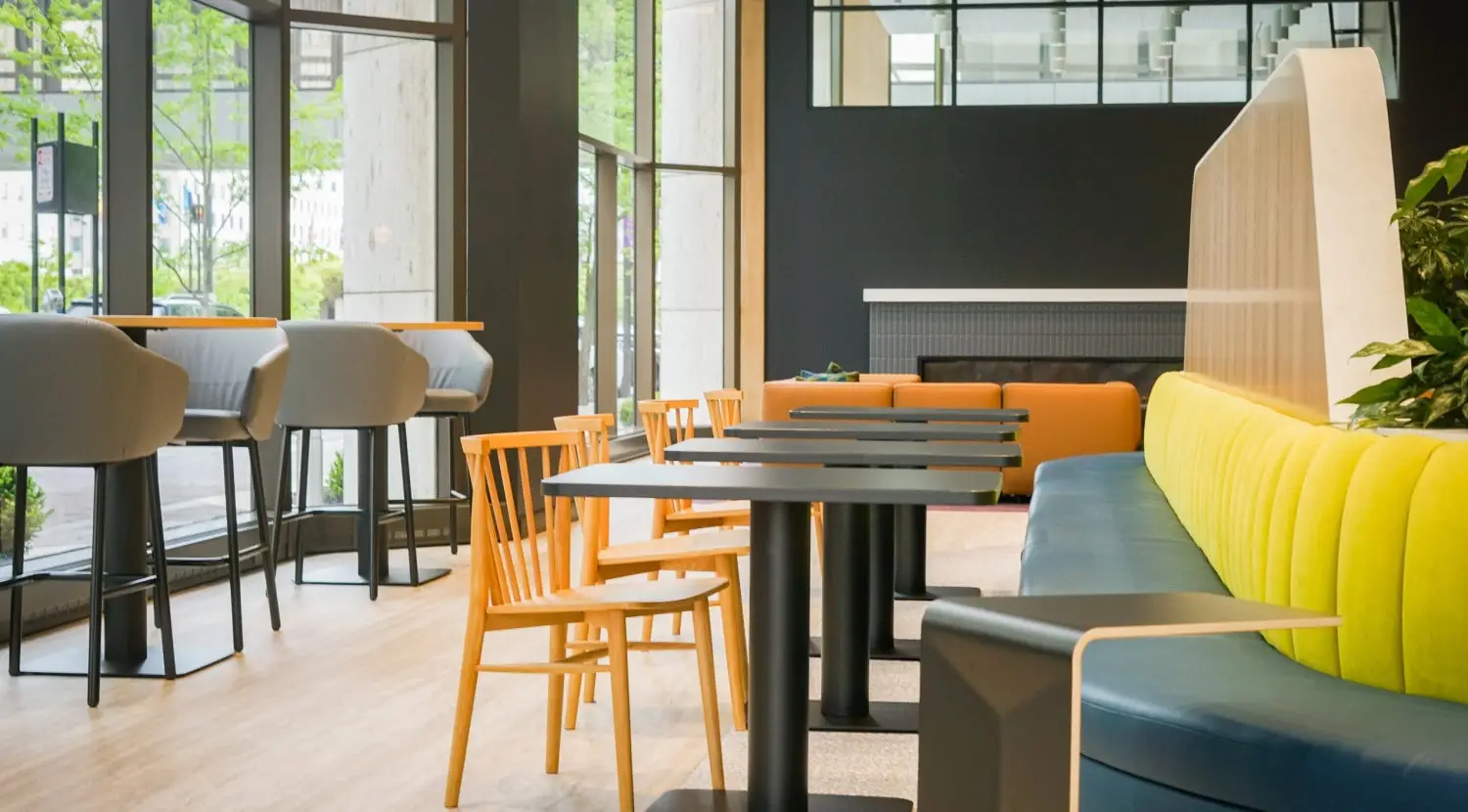 Create a vibrant, flexible environment with a “wow factor” that supports a variety of activities including dining, casual meetings, and entertainment—enhancing both wellness and workplace culture.