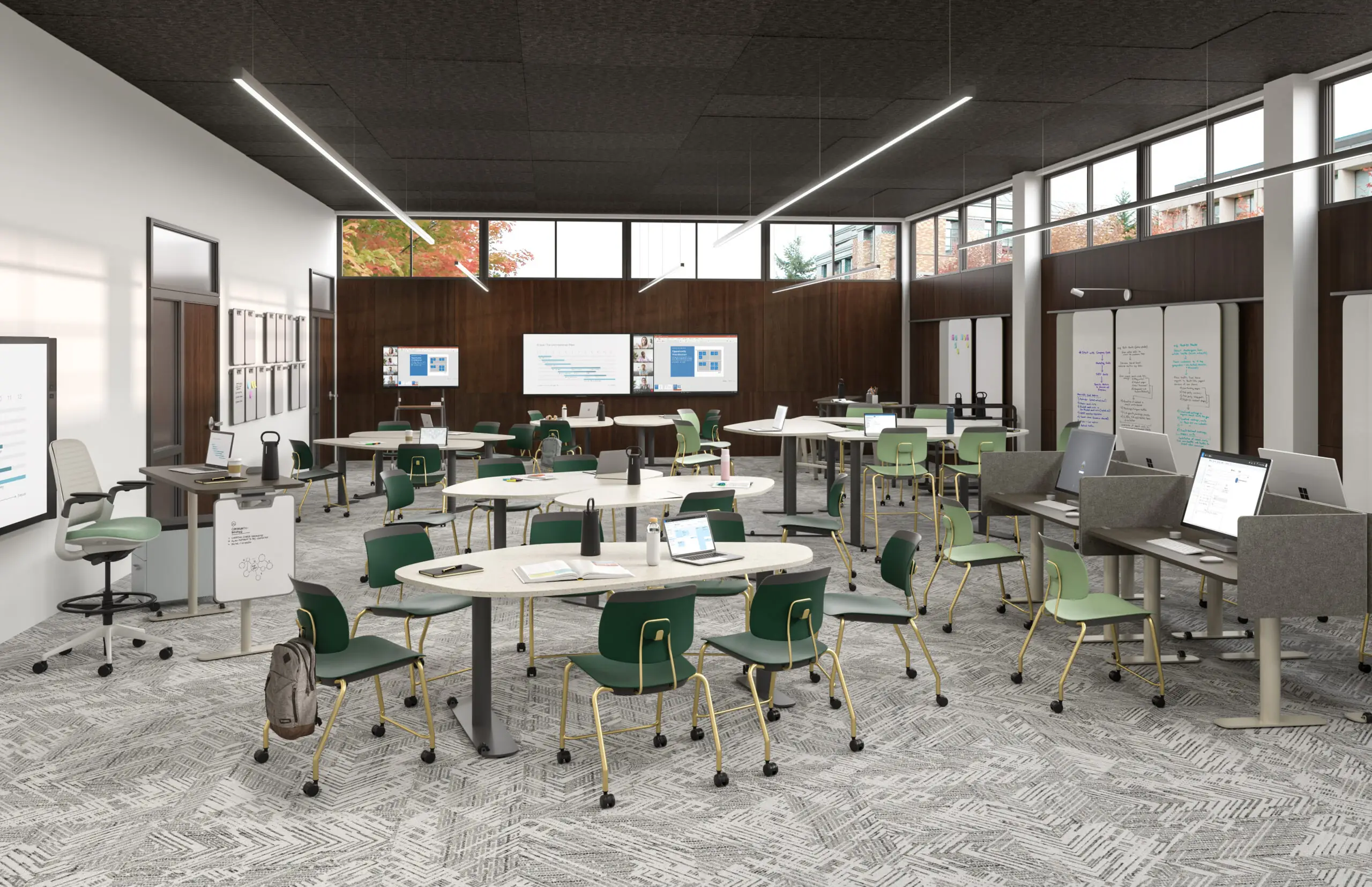 • Nondirectional seat and open frame so users can easily pivot or rotate to engage with peers or technology.