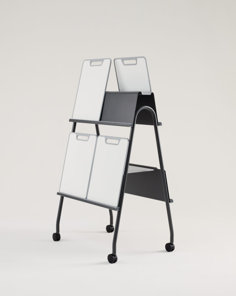 Includes standard-sized whiteboards sized for personal or small-team use. Also compatible with accessories such as wall tracks/hooks and easels for display and storage.