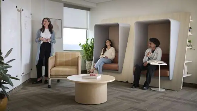 The Heya lounge collection by OFS redefines personal space with comfort and simplicity—encouraging connection, creativity, and focus. With soft shapes and optional privacy panels, Heya provides a welcoming retreat for solo work or small group collaboration.