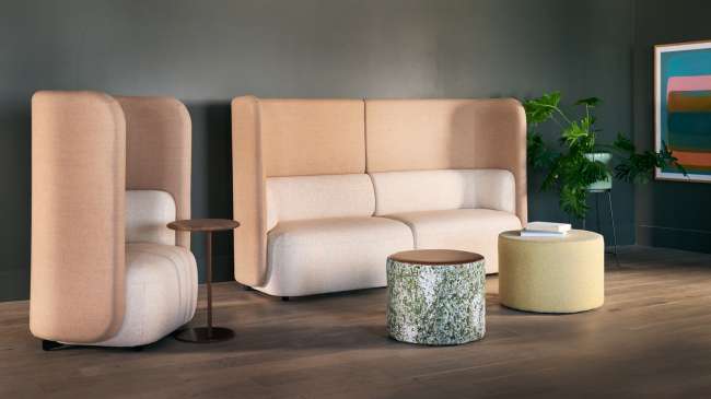 Available as lounge chairs, sofas, and modular units with or without privacy panels. Upholstery options include Kvadrat, Maharam, and Designtex textiles; base finishes offered in wood or metal to complement any interior aesthetic.