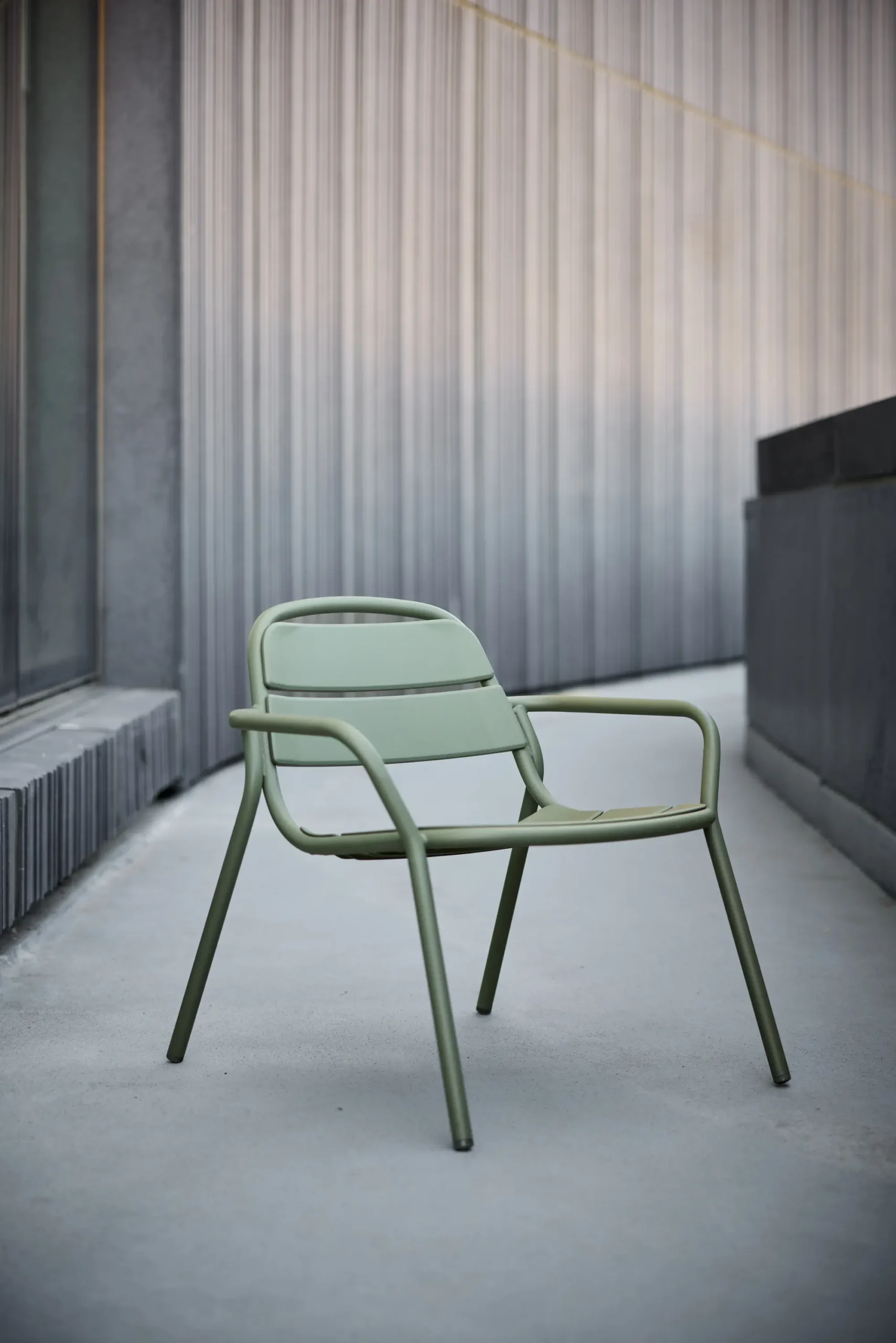 The 21 Lounge Chair extends the company’s popular 21 line into a lounge-style form, designed for outdoor spaces with relaxed seating postures, a wide 21-inch seat pan, durable materials and stackable convenience.