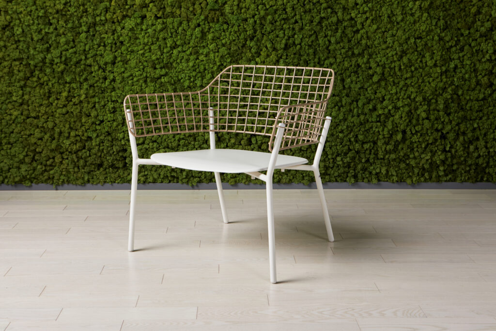 The Lyze cheir is a modern, lightweight chair designed for both outdoor and indoor use, blending refined materials with sleek styling to suit patios, lounges, cafés, or communal spaces.