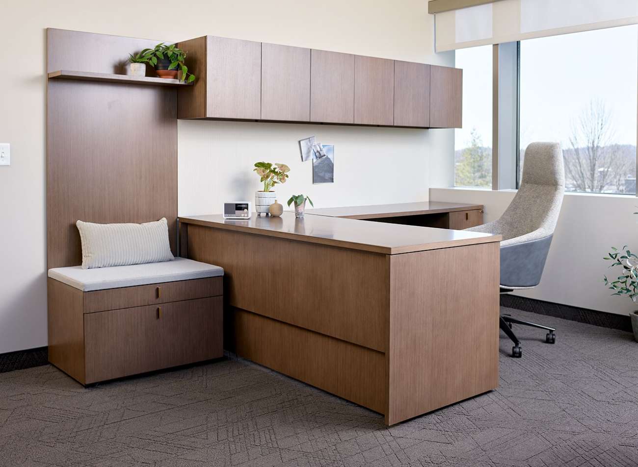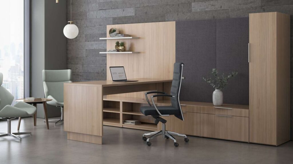 Private offices where design, flexibility, and functionality converge, spaces for leaders, focused individual work, and environments that reflect personal style while supporting workflow. Private offices where storage is a key consideration, whether for personal belongings, display, technology integration, or evolving work habits and where design, ergonomics and flexibility are all priorities.