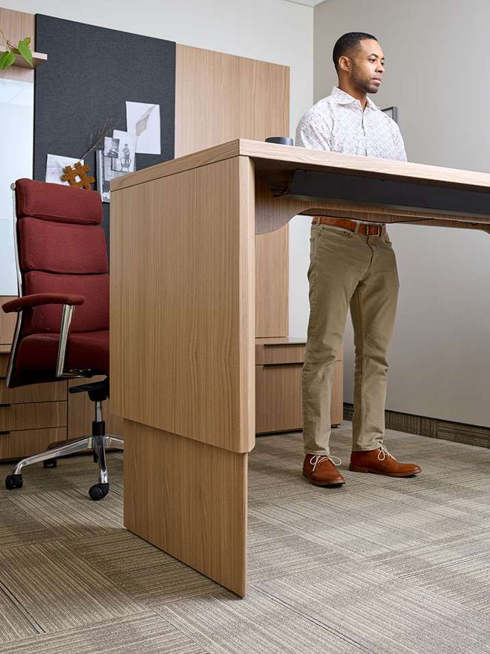Impulse is designed to personalize the private office experience, combining warm wood finishes with optional height-adjustable desks, bridges and returns, and a rich storage suite to tailor the space to individual workstyles.