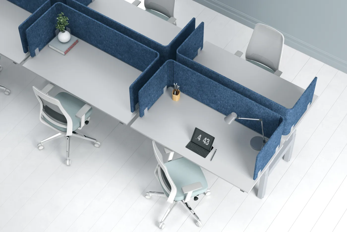 Modern open-plan workplaces, benching clusters or hybrid hubs where team connectivity, individual focus and flexible configuration are required.