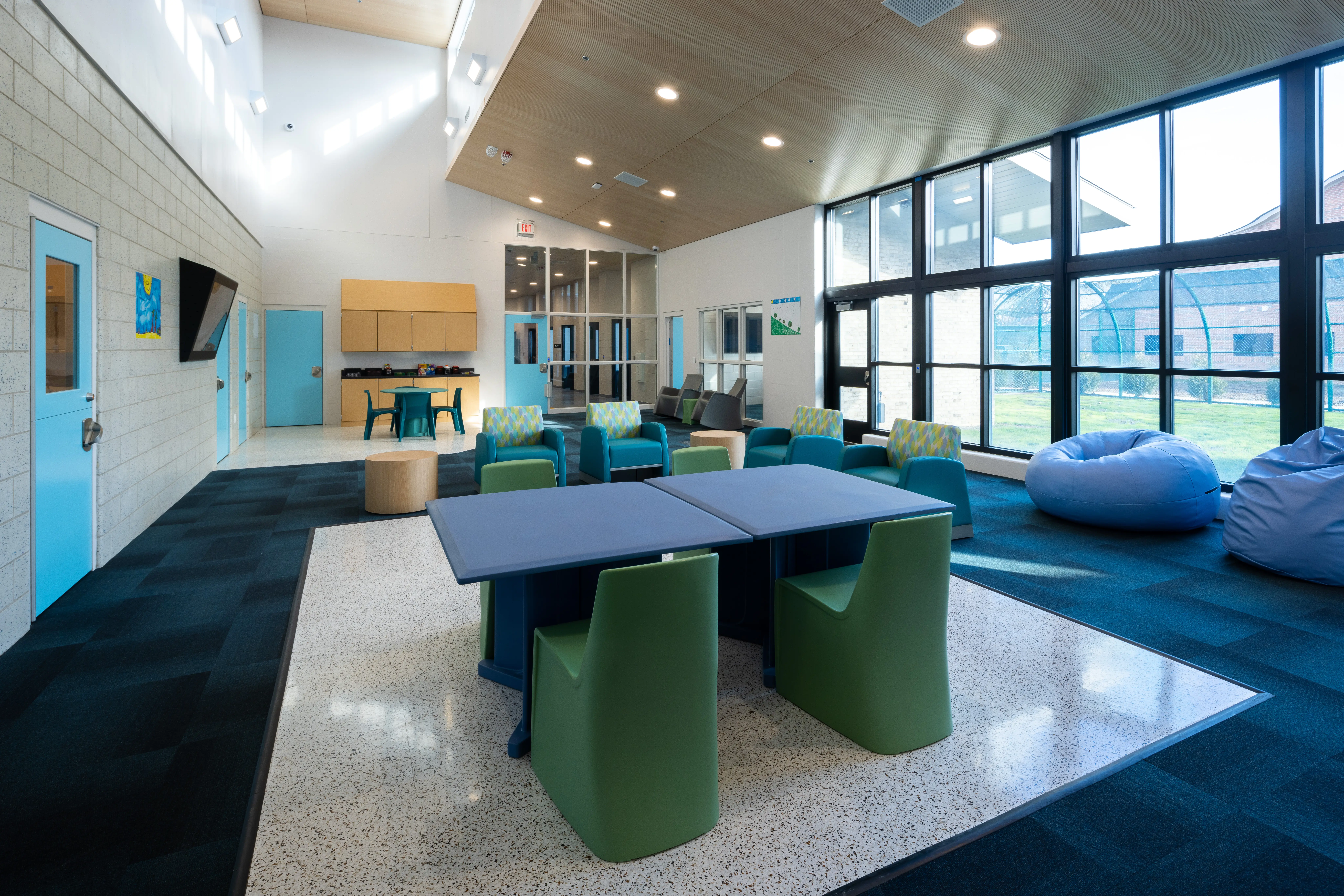 Before this facility, youth in Central Ohio who needed care beyond inpatient treatment faced a critical and urgent gap, often leaving their community and traveling out of state simply to continue their recovery. Buckeye Ranch set out to solve a complex challenge: deliver one of only four specialized behavioral health centers in Ohio that could meet highly clinical requirements while still feeling safe, dignified, and residential in nature. The project demanded a careful balance of therapeutic performance and human comfort, all delivered on an accelerated timeline to respond to the growing need for in-state care.