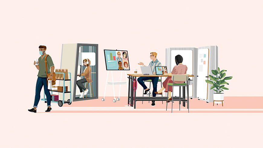 As people begin to test out how to collaborate in new ways, technology and the workplace will continue to evolve. It’s a great time to test new types of experiences by setting up a pilot that braids together the physical and the digital. The best advice is to invite employees to participate in any pilot. Participation and open channels for feedback will send a message that nothing is set in stone. And, be prepared to pivot. As people experience the hybrid workplace, they’ll make adjustments to how they are working and their environment, process and protocols will need to adapt as well. A flexible workplace designed to evolve and adapt as people’s needs change will help poise organizations to compete and grow in the future.