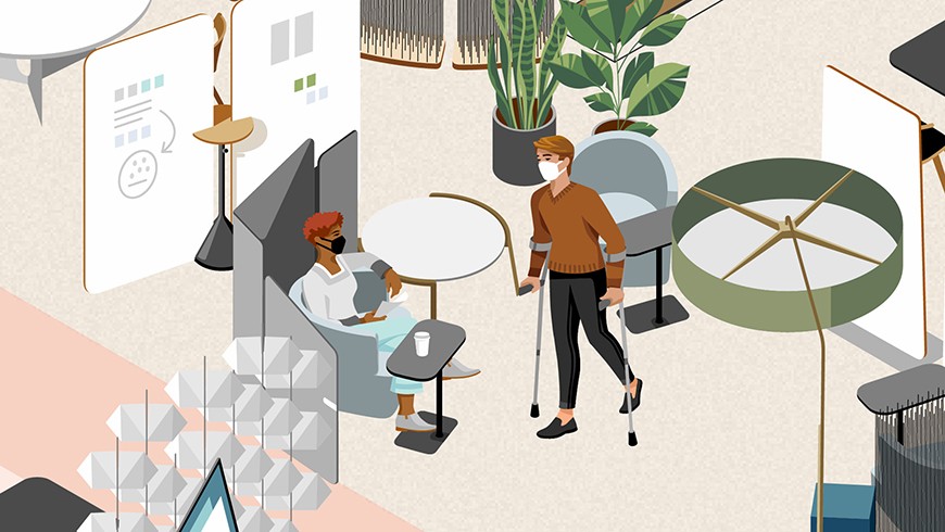 Pre-pandemic, 40%* of people said they needed to change postures frequently because of physical discomfort. During stay-at-home orders many people had to improvise and work from sofas, kitchen tables and even beds. Pain, distractions and stress have caused people to yearn for a broad interpretation of comfort, especially after such a disruptive time. They need the ability to work in a range of postures, change settings and to move throughout their day. They need a quiet, distraction free environment when they need to focus and to feel connected to their coworkers and the organization’s purpose.