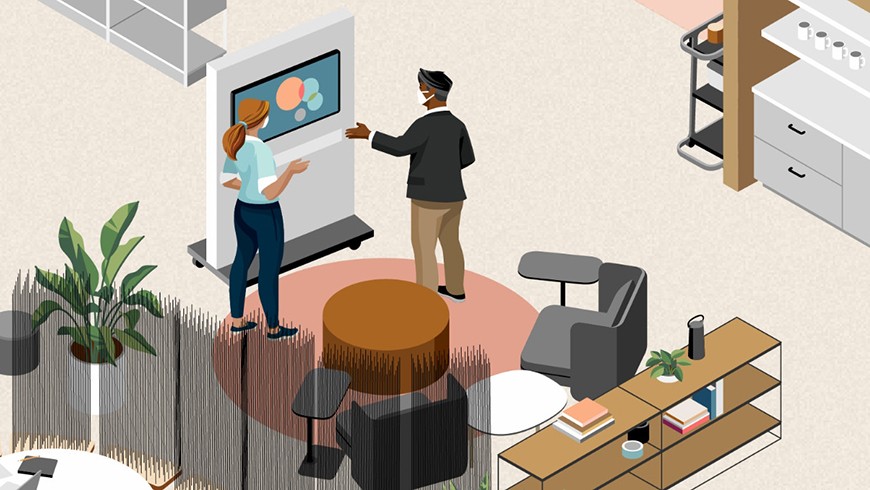 Historically designed for permanence, buildings and offices have been dominated by fixed architecture, power and furnishings. Going forward, organizations will offer more flexible work policies and they need places that can adapt easily to the changes in where and how people work, and respond to changing business circumstances. Workplaces will need to embrace multi-use spaces that can support diverse types of activities. Furnishings will easily move to allow spaces to expand and contract as needed.