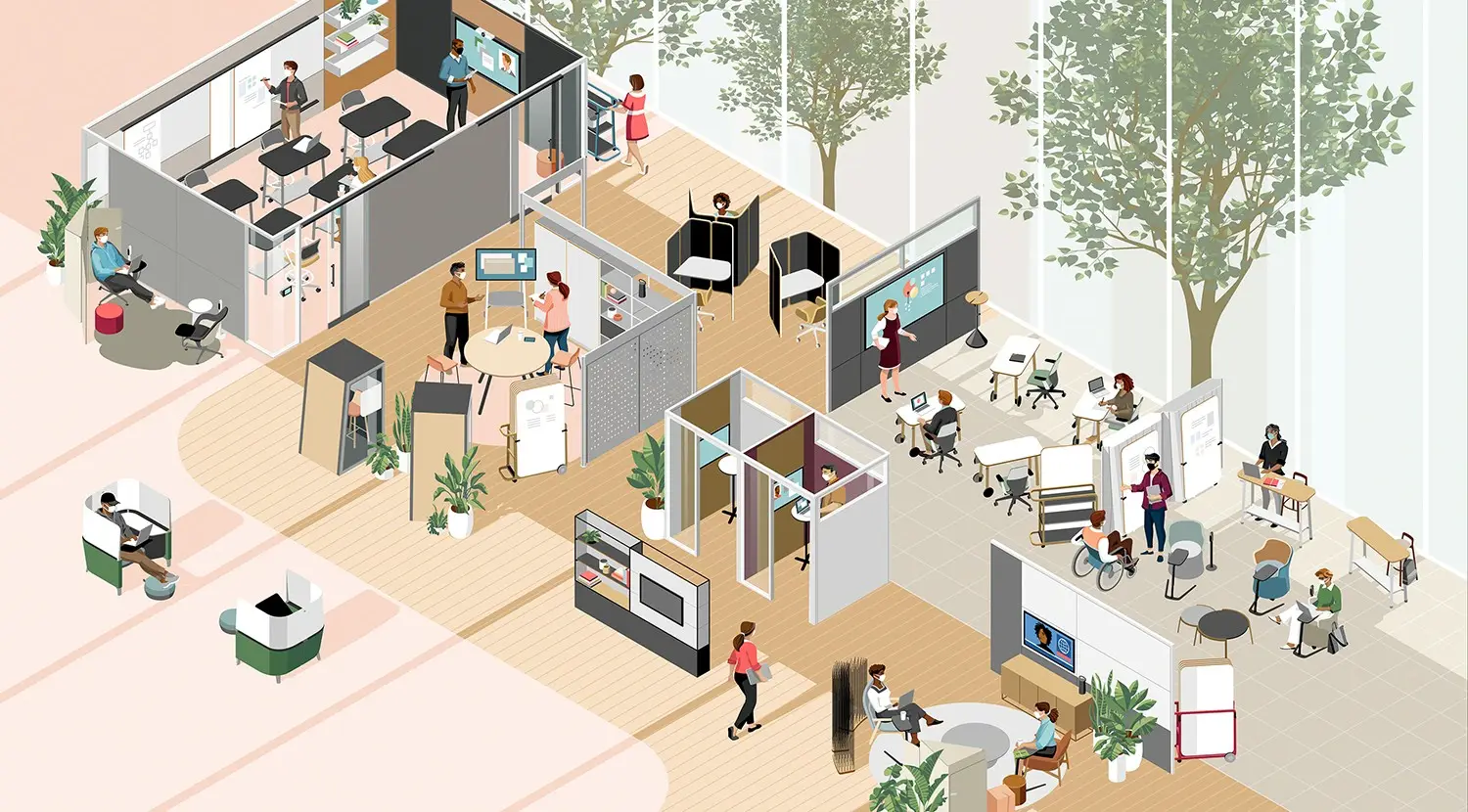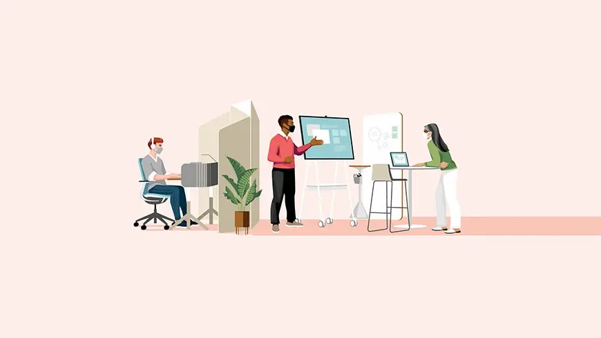 People’s desire to accomplish something meaningful, has only heightened during the crisis. Before the pandemic people were frustrated with workplaces that didn’t give them ways to control their privacy and do focused work. During the pandemic, working from home didn’t make that any better for many people: engagement declined 14% and productivity dropped 12% among employees who were unsatisfied with their work-from-home situation, especially the longer they did it. The top three things people say they want from their office are all about being more productive: to collaborate with others effectively, easier access to tools and resources and the ability to focus. People want a better experience in which they can easily shift between group and solo work in both physical and digital environments.